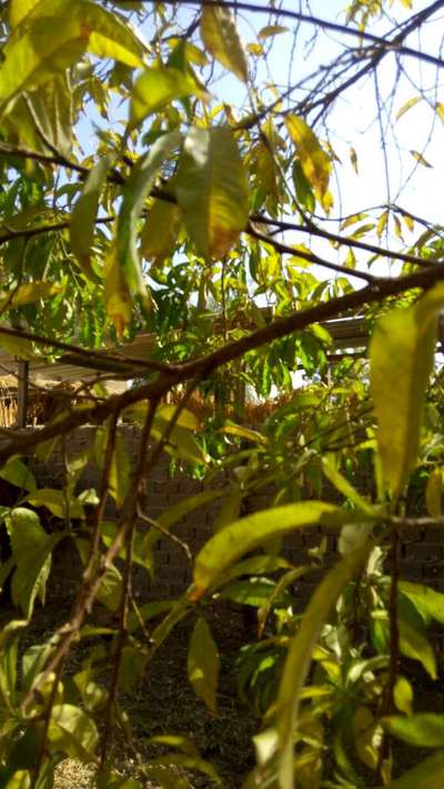 اوراق الخوخ حديثة النمو.. توقفت عن النمو وتحول الى اللون الباهت وانعدام اللون اَو الاصفرار مع بعض البقع الصفراء او عديمة اللون علما بان هذه الاوراق حديثة وفي اعلي الشجرة the upper part of the tree became less green or more yellow and new leaves also became less green and stopped from growing new leaves