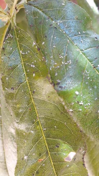 تعرف على المزيد حول بلانتكسالاوراق معسلة و حشارات كثيرة قامت بالعدوى الى جميع الغلال الموجودة خوخ مشمش لوز حب الملوك و كل الثمار فسدت و اصبح بها دود