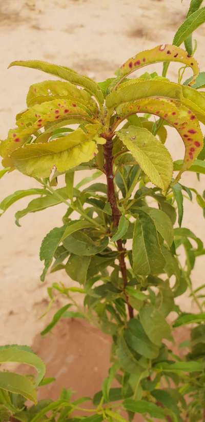 بقع حمراء على ورق الخوخ والنكتارين