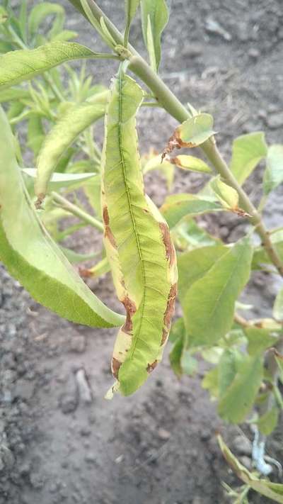 هذه شجرة خوخ او دراق غرستها هذا العام فلما اورقت صارت اوراقها بهذا الشكل ماهذاةالمرض وما علاجها شكرا لكم