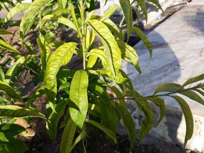 اصفرار و تساقط اوراق الخوخ مع ظهور بقع حمراء
