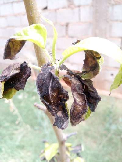 جفاف الورقة باللون الأسود ، مع العلم أنها شجرة حديثة الغرس ،