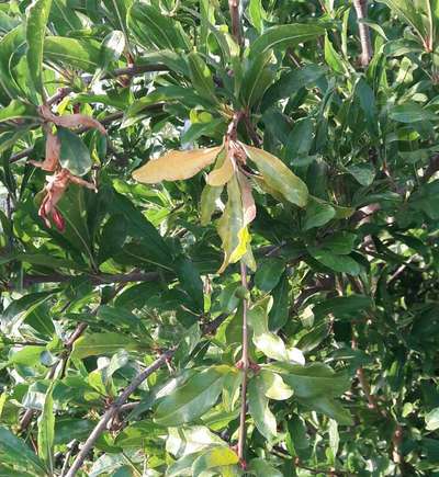مرحبا عندي مشكلة مع شجرة الرمان يوجد اصفرار على بعض الاوراق و بعض الذهور ليس فيها حياة
