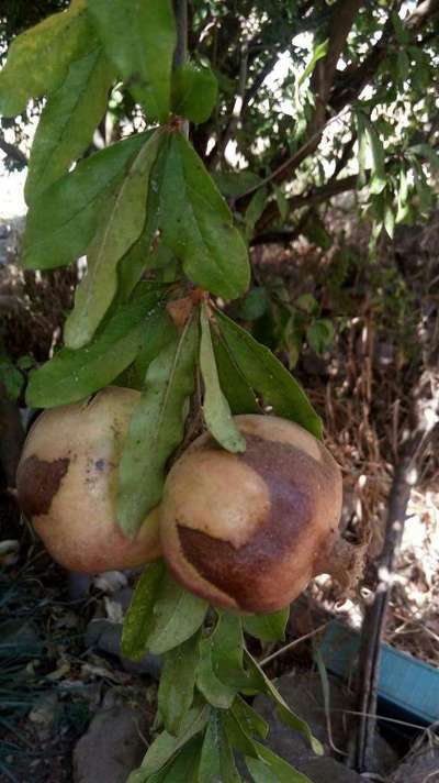 Djamel Guazou You may ck Anthracnose of Pomegranate. If you click on the green hyperlink that takes you to plantix library for details on the disease and control measures.
