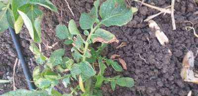 وجود بعض أوراق البطاطس بشكل غير طبيعي ويبدو منكمش