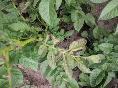 حرق جزءي وكلي لبعص الاوراق وذبول لبعض الساقات لنبتة البطاطيس هذه الحالات تعم الحقل باكمله