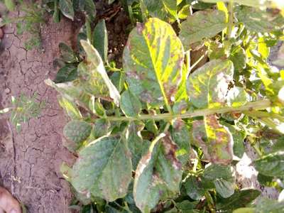 نقط بلون البني ع شكل الصدء ع محصول البطاطه مع الون الصفر