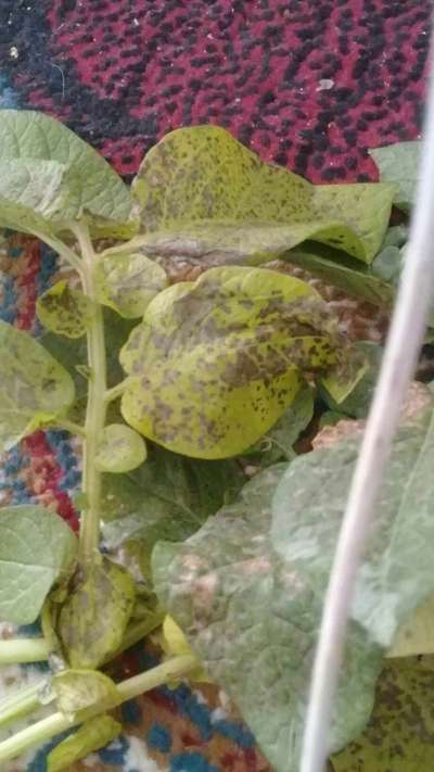 نقط بلون البني ع شكل الصدء ع محصول البطاطه مع الون الصفر