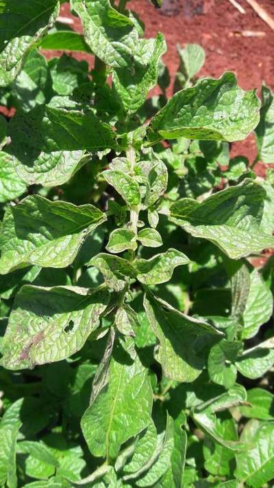 حرق جزءي وكلي لبعص الاوراق وذبول لبعض الساقات لنبتة البطاطيس هذه الحالات تعم الحقل باكمله