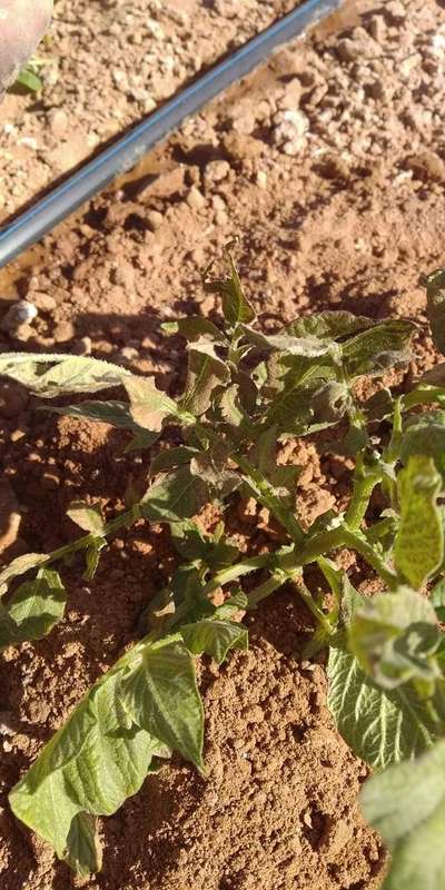حرق جزءي وكلي لبعص الاوراق وذبول لبعض الساقات لنبتة البطاطيس هذه الحالات تعم الحقل باكمله