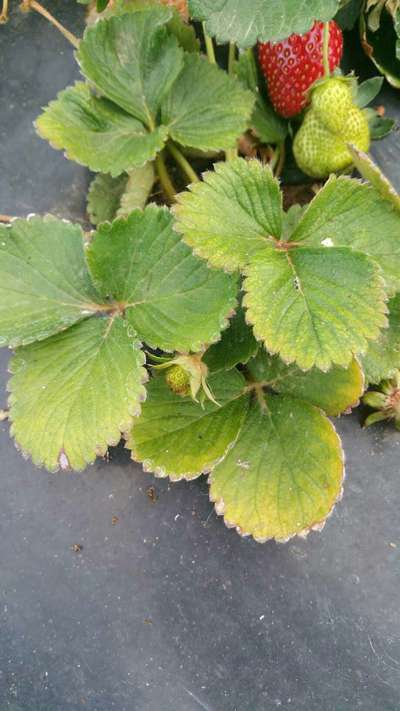 منذ بداية الأسبوع وأنا ألاحظ هذي العلامات على اوراق الفراولة.. هل هذا هو البياض الدقيقي؟ وما هو الحل بالمبيدات العضوية؟