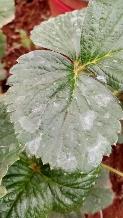 بقع بيضاء على نبات الفراولة كما في الصورة