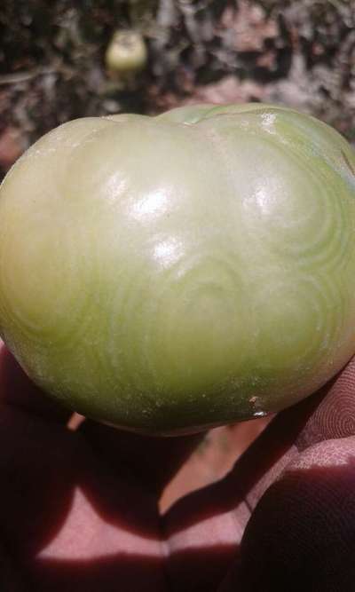 ثمرة الطماطم تبدو كما هي في الصورة مشوهة و عليها خطوط دائرية