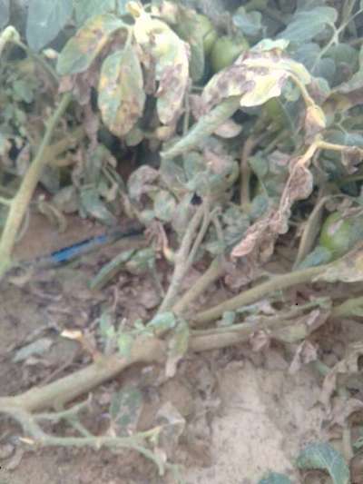 كما يظهر في الصورة الاوراق يبدا عليها تبقع بني واصفر الى ان تيبس كافة الورقة صعودا الى اعلى النبتة