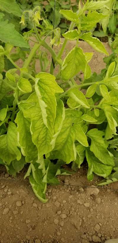 أصفرار كامل لأوراق الطماطم وتصاقط الأزهار وضعف عام للنبات