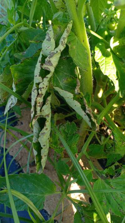 توجد كرمشه للأوراق العلويه للطماطم