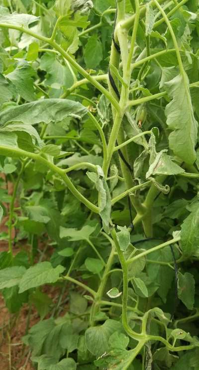 ضهور بقع بنية الون على أوراق الطماطم يبدأ من أسفل الى أعلى ثم تذبل وتحترق كما في الصور المرفقة