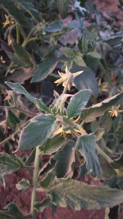 Hello dear أحمد الكشكاوى how are you dear as per your image there is sucking insect attack dear that is cause by Leaf Curl in Tomato dear quickly apply spiromesifine or acephate and spray amino acid dear