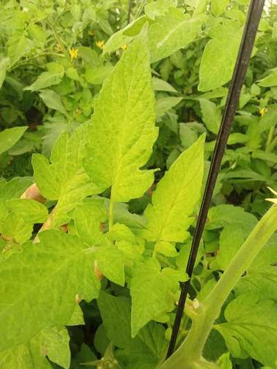 إصفرار الأوراق العلوية لنبتة الطماطم