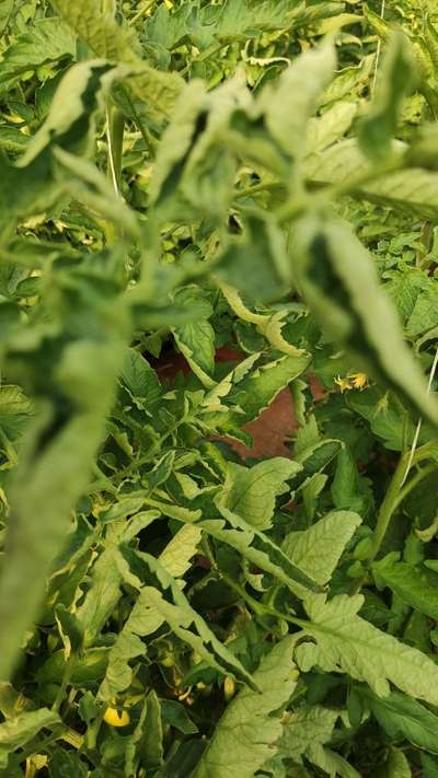 ما هي المشكله تجعد والتفاف اوراق الطماطم بدون اصفرار ولا يوجد ذبابه بيضاء