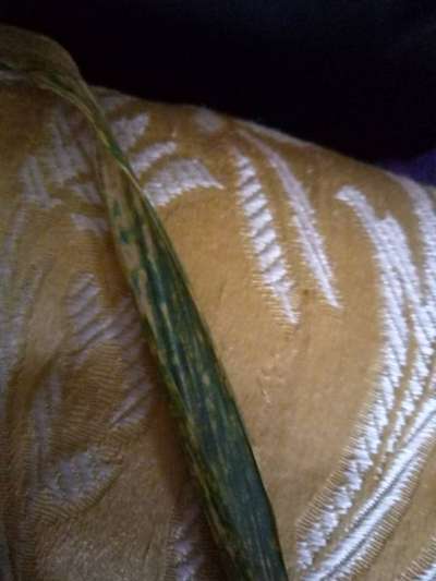 الورقه تغيرت من الون الاخضر الي الون يشبه الصدي وعلي الورقه بدره صفراء