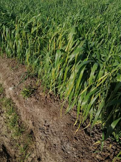 اصفرار اوراق القمح الاصفرار موجود في منتصف النبات