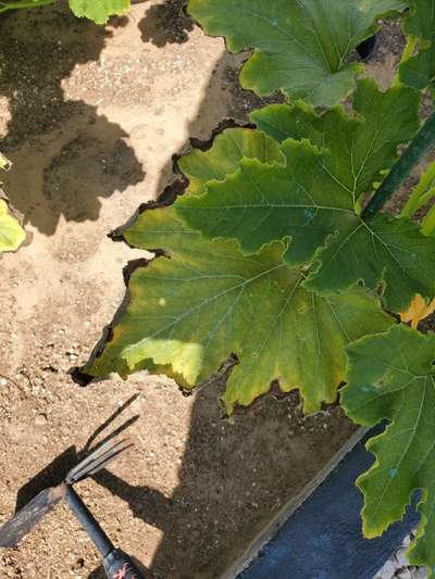 اصفرار واحتراق حواف الاوراق القديمه بالكوسا