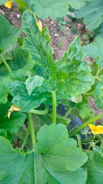 أوراق الكوسة صفراء و فيها أماكن بيضاء