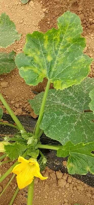 أوراق الكوسة صفراء و فيها أماكن بيضاء