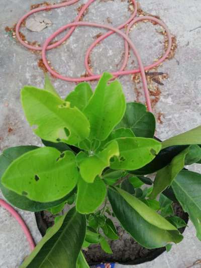 পাতায় ছিদ্র করে খেয়ে নেয় পোকা না কি জানি না।