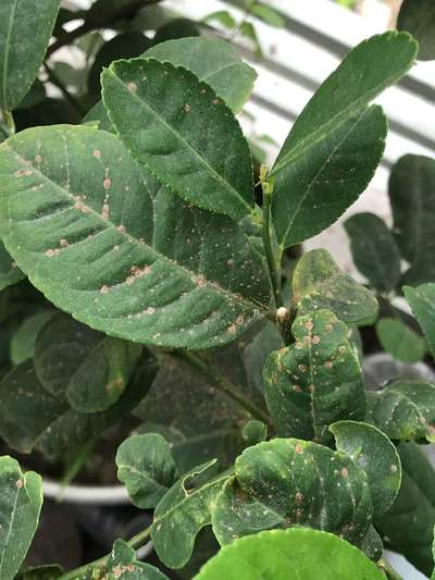 লেবু গাছের পাতায় বষন্তু দাগের মত দেখা দিয়েছে,