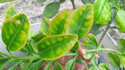 কমলা গাছের মধ্যবয়সী পাতাগুলোর এই অবস্থা।