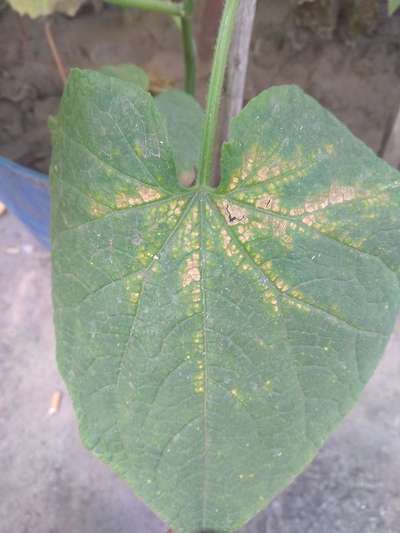 Wk.Waies07 আপনার আক্রান্ত গাছের পাতার অবস্থা দেখে মনে হচ্ছে Downy Mildew of Cucurbits রোগ হয়েছে। সবুজ লিংক এ ক্লিক করে তুলনা করতে পারেন।