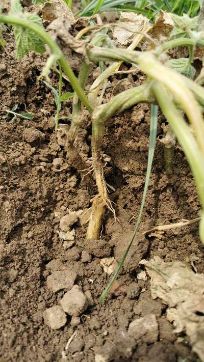 শসা গাছের মূল শিকড়টি যেখানে মাটি সপর্শ করছে ঠিক তার নীচের অংশ টি পচন ধরে পুরো গাছটি ঝলসে শুকিয়ে যাচ্ছে