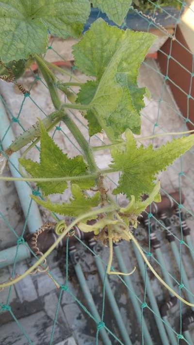 পাতার পরিবর্তন, শশার কড়া গুলো শুকিয়ে মরে যাচ্ছে পাতার উল্টো দিকে হলুদ হয়ে শুকনো হয়ে যায়