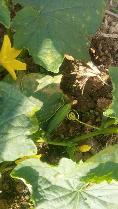 শসা ধরেছে কিন্তুু বাড়ছে না পাতায় ছিটেফটা দাগ হয়েছে।