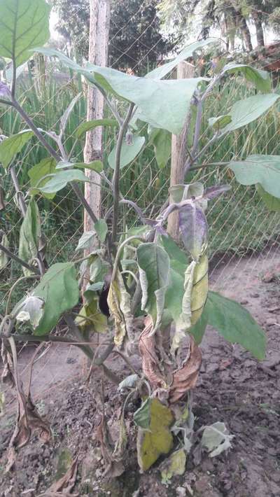বেগুন গাছের পাতার রং আস্তে আস্তে হলুদ হয়ে নেতিয়ে পড়ছে। গাছের শিকড় সতেজ কিন্তু কিছু কিছু গাছের ক্ষেত্রে গাছের গোড়ায় পচন ধরছে। গাছে কোনো পোকার আক্রমণ দেখা যাচ্ছে না। স্টোক এর মতো,,।