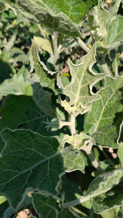 বেগুন গাছের পাতা উপর দিকে কুঙরে যাচ্ছে...