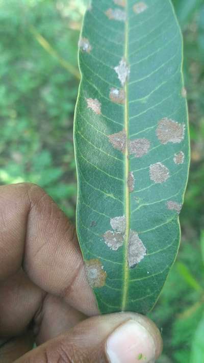 আমের পাতায় সাদা সাদা ছোপ। তারফলে পাতা হলুদ হয়ে যাচ্ছে।