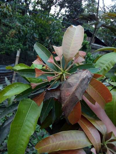 পাতা সবুজ টাটকা ও আঠাল রস কান্ড দিয়ে বের হচ্ছে।