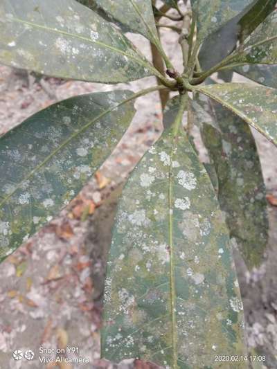 আম গাছটির পাতায় এরকম সাদা সাদা দাগ এক্ষেত্রে কি করতে হবে?