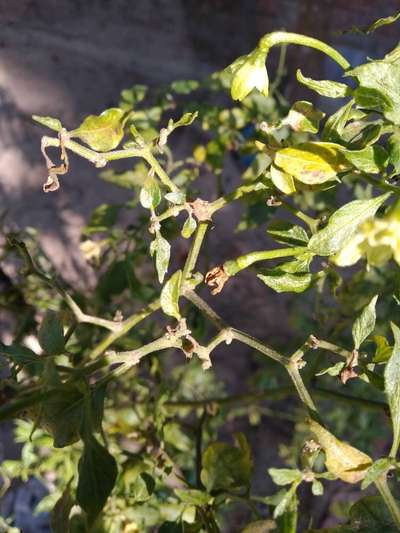 পাতা হলুদাভ হয়ে যাচ্ছে। ফুল এসে নষ্ট হয়ে যাচ্ছে কিন্তু ফসল আসেনা। পাতা কুকডিয়ে যাচ্ছে।