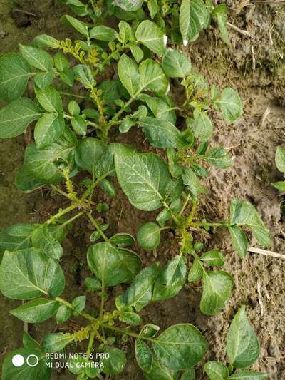 আলু লাগিয়েছি ৩০ দিন হলো। এখন পাতা গুলো ওপরের দিকে কুকড়ে যাচ্ছে এবং হালকা হলদাটে হয়ে গেছে