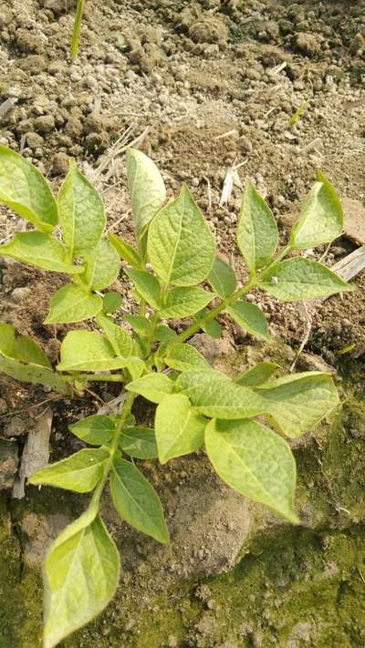আলু গাছ তাতে মেট্রো জিন এবং পাওলি দেয়া হয়েছে হলুদ হয়ে গেছে এবং কুঠা হয়ে যাচ্ছে