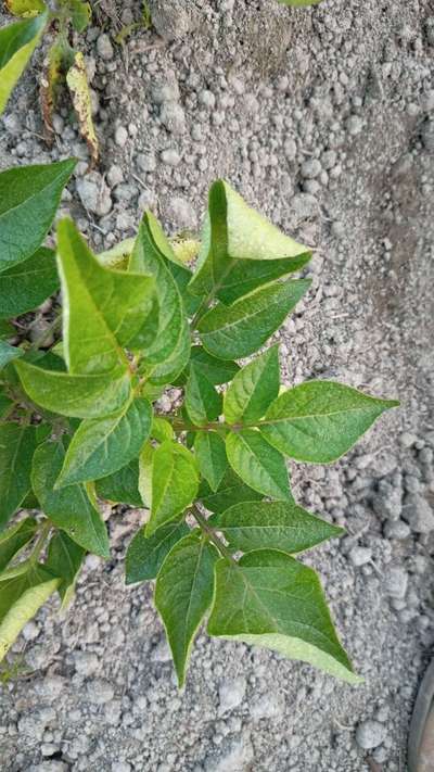 পাতা গুলি শুকিয়ে গেছে।প্রধানত নিচের দিকের পাতা।হলেন আলু।। পাতাগুলি শুকিয়ে একটু ওল্টানো মতো কুকরে গেছে।। সমাধানের উপায় খুব দরকার?