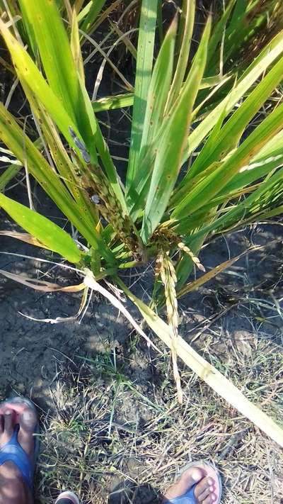 ধান কাটানো চলবে,শীষের গোড়ায় কালো কালো ছোট ছোট ডেলা দেখা যাচ্ছে কিছু জায়গায়।