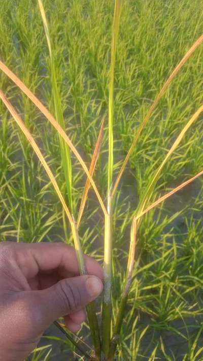 , ধান গাছের পাতা হলুদ হয়ে যাচ্ছে । এর জন্য আমি কি ঔষধ দিবো ।
