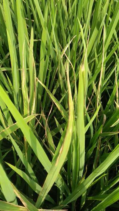 পাতায় কোনো সমেস্যা নেই এবং কোন প্রকার পোকার উদ্রবও দেখা যাচ্ছে না ৷ প্রতিটা শীষে ৮০% ধান চিটা হচ্ছে ৷ চিটা গুলি সাদা ধূসর এবং কালো দাগ পরছে ৷