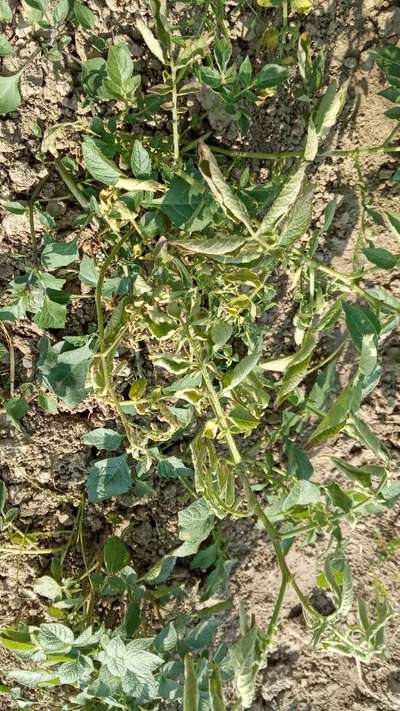Masud গাছে সম্ভবত Boron Deficiency আছে। বিস্তারিত জানার ও প্রতিকারের জন্য সবুজ লিংকটি ক্লিক করুন। তাছাড়া Potato Leafroll Virus এর লক্ষনসমূহের সাথেও তুলনা করে দেখতে পারেন। ধন্যবাদ।