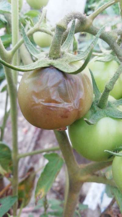 M A Malek Tomato Late Blight বা Alternaria Black Spot and Fruit Rot এর কারনে এমনটা হতে পারে। সবুজ লিংক ২টি ক্লিক করে লক্ষনসমূহ মিলিয়ে দেখুন এবং ব্যবস্থা নিন।